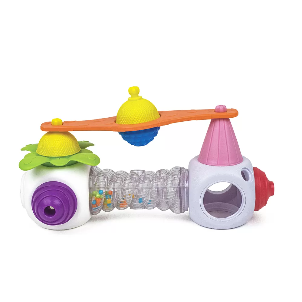- Vanaf 10 maanden kan uw kind zijn zintuigen gebruiken om de verschillende vormen en kleuren van de kralen en vormen te verkennen.